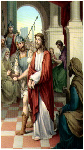 Quando pediram a crucificação de Jesus, Pilatos pediu água e lavou as mãos, dizendo: "Não sou responsável pelo sangue deste homem. É um problema de vocês". Depois de mandar açoitar Jesus, entregou-o para ser crucificado.