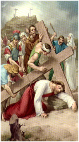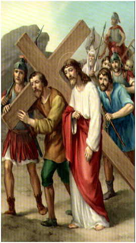 Enquanto levavam Jesus para ser crucificado, Simão de Cirene, que voltava do campo, foi obrigado a carregar a cruz para que Jesus não desfalecesse pelo caminho, pois tinha de permanecer vivo até a crucificação.