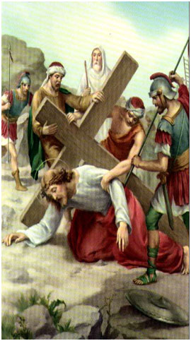 Jesus sabia do fim que o esperava. Seu espírito estava preparado, mas seu corpo estava esgotado e abatido. Por isso, caminhava com dificuldade e pela segunda vez cai sob a cruz.